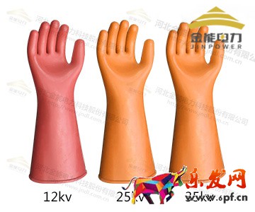 高压绝缘手套适用于带电设备带电作业时使用,防止手部误触带电体,遭到点击,对人的生命安全造成威胁。高压绝缘手套使用较多的为12kv,25kv,35kv高压带电作业手套。