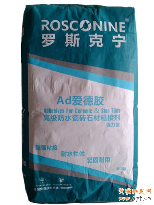 贴好砖!用爱德胶 AD高级瓷砖石材胶粘剂 Adhesives for ceramic wall and floor tiles 罗斯克宁AD爱德胶由进口添加剂、无机胶粘材料以及精选细骨料经科学配方生产而成。 爱德胶瓷砖胶粘剂是强力型瓷砖胶粘剂,可粘贴吸水率较低和设有宽缝的外墙砖 性能特点 强力粘结、超硬、高强度、不开裂、不空鼓; 耐水性好、耐候性能优异、可用于长期浸水工程; 无需浸砖、施工便捷; 可用于各种基面以及在旧基面上直接翻新贴瓷砖。 薄层施工、减轻自重; 环保无毒,可用于饮水池。 适用范围 室内外墙面、地面瓷砖、陶土砖、马赛克和各类板石、花岗岩、大理石等天然石材的粘接; 性能指标 本产品是符合JC∕T 547—2005标准中C1F型的技术要求。 项目 指标 拉伸胶粘原强度,Mpa ≥ 0.5 浸水后的拉伸胶粘强度,Mpa≥ 热老化后的拉伸胶粘强度,Mpa≥ 冻融循环后的拉伸胶粘强度,Mpa≥ 晾置时间,10min拉伸胶粘强度,Mp≥ 晾置时间,20min拉伸强度,Mpa≥ 早期拉伸胶粘强度,24h/Mpa ≥ 施工工艺 1、基面处理: 所有基面应牢固、干净、无空鼓、浮沉和其它松散物,特别需要清洗基面的脱模剂、油污、蜡渍等,否则会影响粘接;新混凝土及砂浆基面,应完成养护后方可铺砖; 旧混凝土及砂浆基面要使用清洗剂及高压水龙头冲洗干净。在吸水率大的底材或在高温、干燥的环境下,施工前须先润湿基面。 2、搅拌:将清水加入搅拌桶中,使用电动搅拌器一边搅拌一边慢慢加入AD艾德胶,充分搅拌5分钟至无生粉团、均匀的膏状;搅拌根据温度变化比例为粉料:水=1:0.2-0.25;搅拌完成后,静置十分钟,重新搅拌一下即可使用 3、施工:用齿形刮板将胶浆均匀的涂刮在工作表面上,每次涂布约1m2,然后将瓷砖揉压于基面上,并调整瓷砖的平行度,为保证瓷砖的平行度建议使用塑料填缝十字,地砖铺完后24h进行清理勾缝;选择齿型刮板大小应考虑工作面的平整度和瓷砖背面的凹凸程度;如瓷砖背面的沟隙较深或石材、瓷砖较大较重,则应进行双面涂胶,即在工作面和瓷砖背面同时涂上胶浆;请勿使用点铺法施工,点铺法容易造成空鼓。 4、参考用量:因基面平整度而定,一般情况下:用3mm×3mm齿形刮刀用量约为2.3Kg/m2;用6mm×6mm齿形刮刀用量约为3.5Kg/m2;用10mm×10mm齿形刮刀用量约为5Kg/m2。 粘贴小型尺寸的瓷砖时,建议使用6×6(mm)的齿型刮板 粘贴大型尺寸的瓷砖时,建议使用10×10(mm)或12×12(mm)的齿型刮板 ■注意事项:搅拌好的“Grouts固牢特”请在90分钟内用完。 施工温度应在5℃至35℃,若温度过高,应先用水湿润降温;使用电动搅拌机搅拌效果最佳;在雨天施工时,一定要做好遮蔽防护措施,并且要确保在贴砖后的24小时内,施工区域不被雨水淋湿;若在地面施工,施工完成24小时后方可踏入进行后续施工。本产品含有水泥成份,可能会引起皮肤过敏,要注意保护皮肤及眼睛,操作时最好戴上手套。 执行标准:JC/T547-2005《陶瓷墙地砖胶粘剂》
