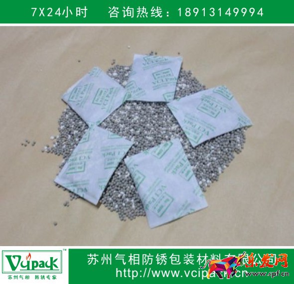 苏州气相防锈包装材料有限公司所产的VCI防锈干燥剂/气相防锈干燥剂/气相干燥剂/VCI干燥剂/ VCI Desiccant是一种以天然矿物质和气相缓蚀剂为基础原料,经过特殊生产工艺制备的多功能干燥剂,其不但能够超强吸收水份,而且同时具有优异的气相防锈性能,是一种替代原始硅胶、蒙脱石等干燥剂的新型防锈蚀产品,适用于铁或非铁金属制品和材料的防锈。
