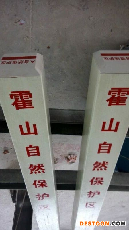 5.玻璃钢标志桩桩体表面内容使用特制特种油漆印刷,附着力好,光泽高。