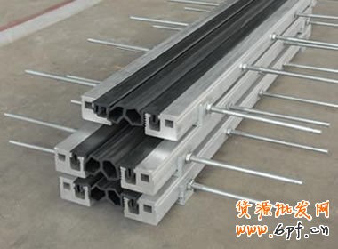 - 模数式伸缩缝:伸缩体采用整体成型的异形钢材制成,由边梁、中梁、横梁、位移控制系统、密封橡胶带等构件组成,适用于各种弯、坡、斜、宽桥梁。模数式伸缩装置可按一定模数任意组拼,从80mm的单缝到1200mm的多缝,当伸缩量≥1200mm时,可按设计要求在工厂加工制造。