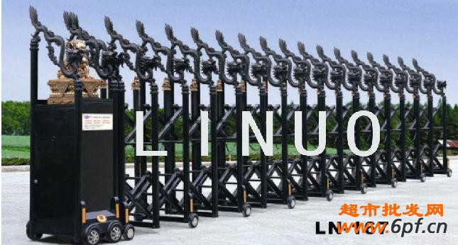 1、伸缩门每个活动部位环节均采用不锈钢管,,轴瓦,不锈钢螺母,尼龙衬垫组装,组装时每个环节点加注高级润滑油,无噪音伸自缩自如。