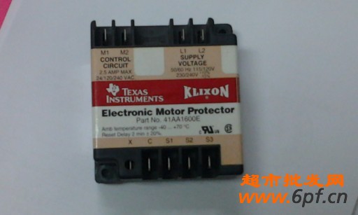 美国KLIXON 41AA1600E/41AA1606E 保护器详细说明 美国KLIXON 41AA1600E 41AA1606E 保护器 美国KLIXOW德州仪器31/41AA16XXE系列 规格:定格:120VAC;208 / 240VAC (± 10%) 作业电流:2.5A,600VA,250V MAX