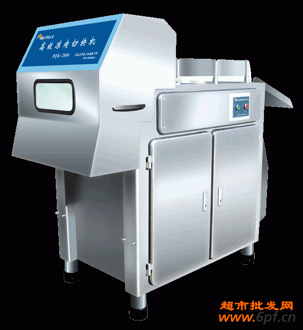 冻肉切块机可直接切割未经解冻的各类冻肉,减少了缓化的时间,避免了整块肉在缓化过程中营养成分的流失,是肉制品加工过程中必不可少的设备。本机吸取了国内外 同类产品的先进技术,并结合我国实际加工工艺研制生产。具有性能稳定,投入小,生产效率高。整机均采用优质不锈钢制造,刀片采用优质合金制造,刀刃锋利,切削 效果好。该机适用于多种肉类模块冻肉切断、分割,也适用于速冻汤圆中的速冻油的切割。生产过程无需解冻,可直接将冻肉块切断、分割,大大降低了用户生产过程中 的制冷费用,保证了肉质不受二次污染和损耗,肉的营养成分不会损失,味道鲜美。型号:QK-2000型 刀架往复次数:41r/min 料道宽度:460/500mm 横刀行程:200mm 输出功率:5.5kw 生产量:5t/h 机器重量:600kg 外形尺寸:1255*720*1420mm