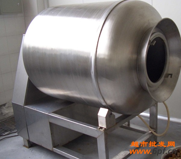 真空滚揉机是在真空状态下,利用物理冲击的原理,让肉块馅在滚筒内上下翻动,从而达到按摩、腌渍作用。腌渍渍液被肉充分吸收,增强肉的结合力和保水性,提高产品弹性及出品率。本机