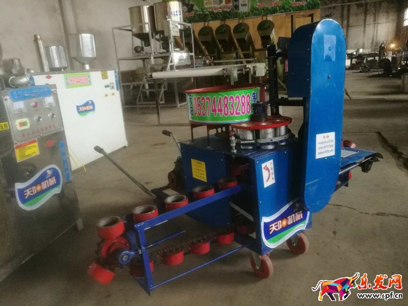 天阳营养钵装土机TZB-80,可用2.2KW电机或4P汽油发动机带动,每小时装钵2000一2500个,黑色杯规格12xI0,12x8,双色杯130x170,装钵大小提前定做,外形尺寸1050*1500*1050mm,重量100公斤,价格9600元,咨询电话18853752099。联系人:李帅,QQ2384314408 微信2384314408