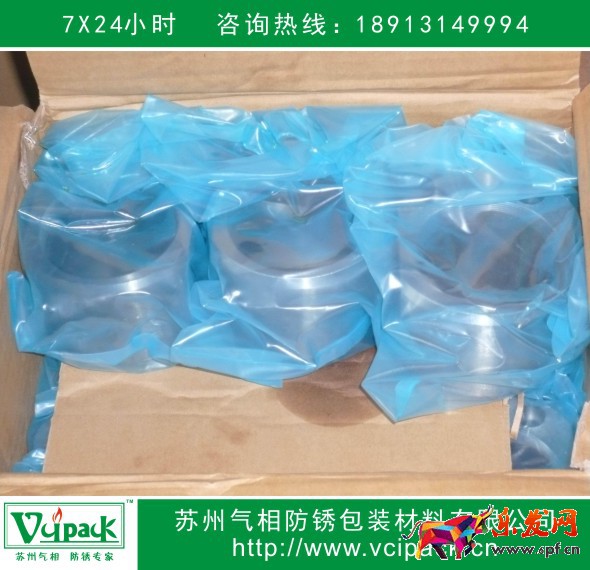 江苏维派防锈包装材料有限公司所产的VVCI气相防锈袋/VCI防锈袋/防锈塑料袋/防锈包装袋/VCI气相袋/VCI塑料袋/VCI包装袋/VCI袋/VCI bag是基于高分子材料与VCI气相防锈技术发展相结合的新一代创新高科技产品。使用该膜将要防锈物品包装密封后,膜体内所含有的VCI开始升华挥发出防锈气体因子,扩散渗透至被防锈物品的表面并吸附其上,形成单分子厚的致密保护膜层。隔绝诱发锈蚀的各因素与被防物品的表面接触,从而有效防止锈蚀的产生。
