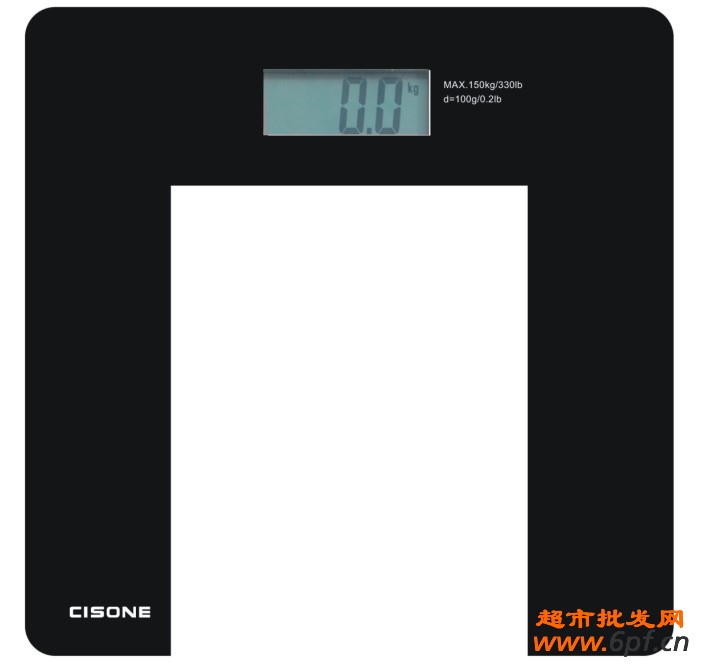 超波人体秤 量程: 3Kg-150Kg (330lb/24st) 分度值: 0.1Kg 5mm 钢化玻璃 高精度传感器 单位转换:kg/lb/st LCD 尺寸:78*35.8mm with 4 digits 自动归零并关机 低电压指示:“ Lo ” 超重/错误显示: Overload/error 1*CR2032锂电池