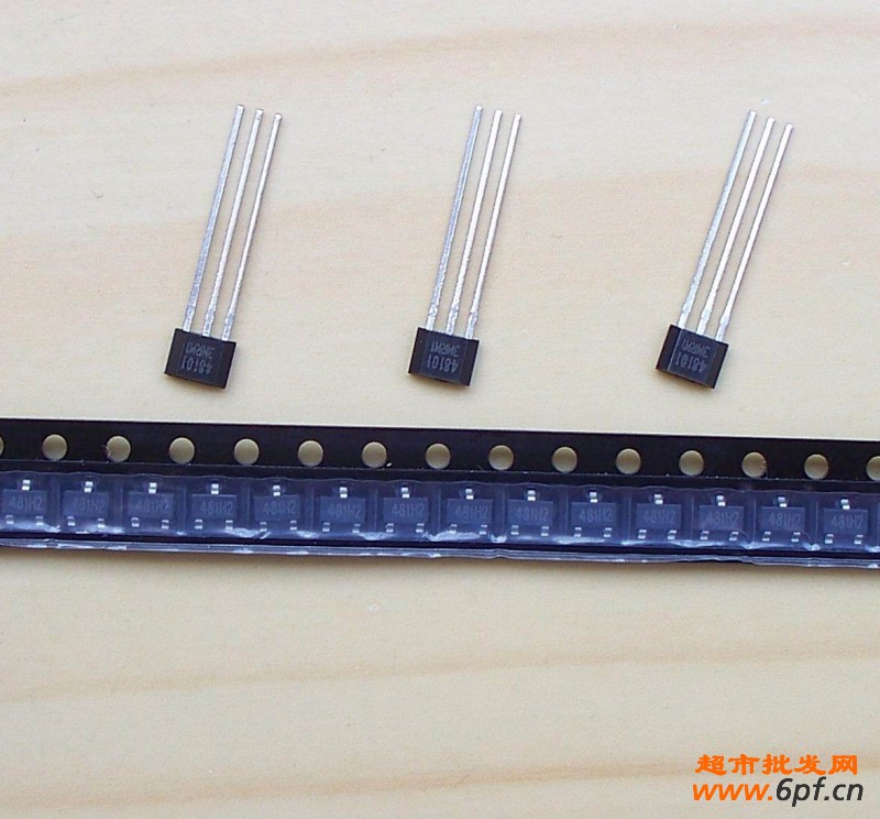 DH481一款基于混合信号的全极性霍尔效应传感器。平均功耗5uA,它采用先进的斩波稳定技术,提供精确、稳定的磁性开关点。它由反向电压保护器、电压调整器,霍尔电压发生器、信号放大器,史密特触发器和集电及开路的输出级组成。它是一种双磁极工作的磁敏电路,适合于矩形或者柱形磁体下工作。工作温度范围可以在:-40~85度, 电压电压工作范围:2.5~5.5V。 封装形式:SIP3L(TO92S)。