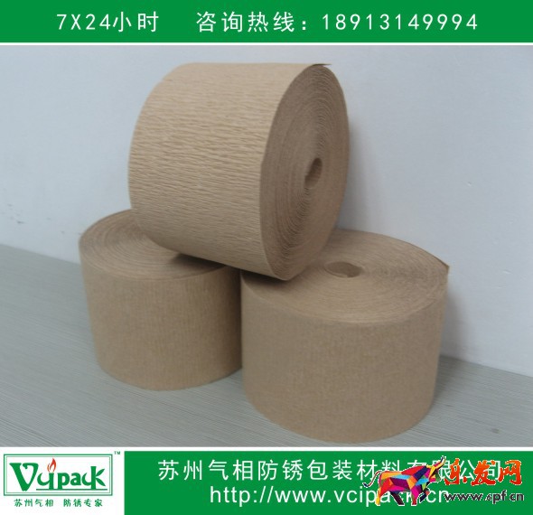 苏州气相防锈包装材料有限公司所产的VCI气相防锈纸/防锈牛皮纸/防锈包装纸/气相牛皮纸/ VCI/VCI paper是基于防锈原纸与VCI气相防锈技术发展相结合的新一代创新高科技产品。使用该纸将要防锈物品包装密封后,纸内所含有的VCI开始升华挥发出防锈气体因子,扩散渗透至被防锈物品的表面并吸附其上,形成单分子厚的致密保护膜层。隔绝诱发锈蚀的各因素与被防物品的表面接触,从而有效防止锈蚀的产生。
