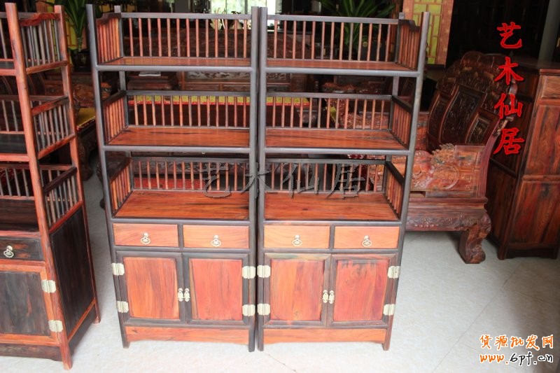 上等仙游红木古典家具/老挝大红酸枝小书架一对/书房古董架/交趾黄檀:供应艺木仙居红木家具最好的红木家具老挝大红酸枝小书架一对交趾黄檀