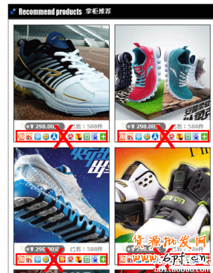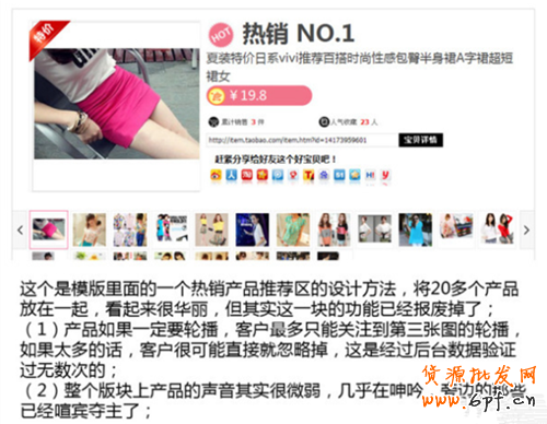 大家可以看到上面的图是装修模板对系统模块优化后的结果,应该说这个产品价格标签把原来对产品的30%的注意力吸引走了,如果模板的开发者是想突出产品的价格优势,那么你的价格就要有更大的吸引力,但是我们看到这个价格好像没有什么号的营销卖点,这就白白的浪费掉了客人的30%注意力,有可能就因为这个30%你就失去了一笔订单。我们再来看看系统自带的推荐模块: