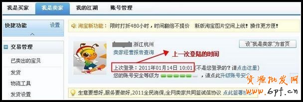 您可以进入“我的淘宝”-“我是卖家”中,,查看您上一次登陆的时间