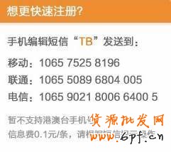 手机快速注册需要收取信息费,0.1元每条,注册淘宝账户免费。
