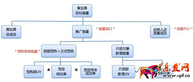 1.聚划算目标销量分解,推导出销量缺口通过直钻弥补