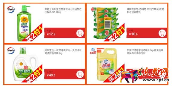 买2付1,实惠感暴涨,很多家庭主妇这时候虽然家里还有洗洁精,还有肥皂,但是还会囤积一批。