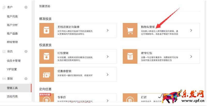 这个不是以前老的购物车营销那里进去,大家复制这个链接进去:主账号登陆ecrm.taobao.com,营销->营销工具->购物车营销 见到如图: