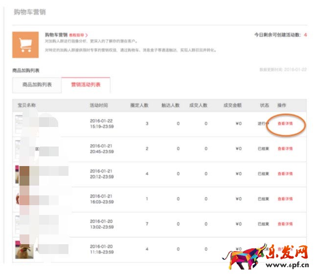 创建完活动后,可以在活动列表中查看活动的基本数据及运行状态。可以通过查看详情,获得本宝贝的活动具体详情好更详细数据。