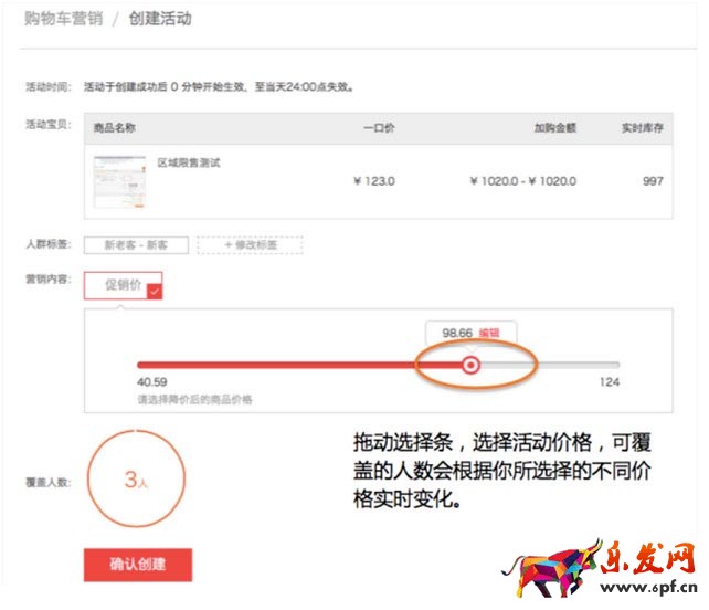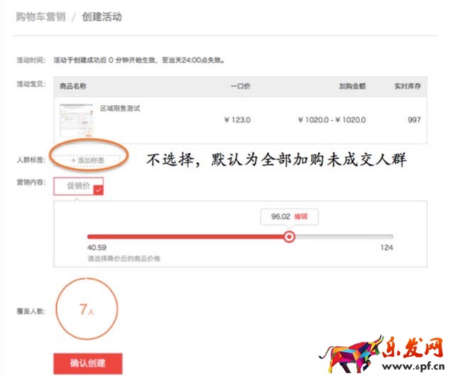 3、优惠、圈人:基于选好的宝贝和选定的人群标签,确定限时活动价格,最终触达的人。