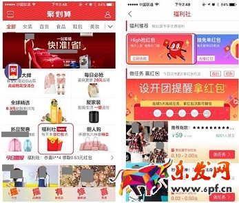 1、手机淘宝聚划算,手机聚划算App首页下拉菜单集合页额外增加曝光