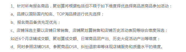 报名了聚划算双十一活动的卖家们,一定要认真阅读以上聚划算双十一活动的每一条事项,以免出了差错,被取消资格,这样就让自己双十一的收获大打折扣了!最后祝各位卖家在双十一都能大干一番!
