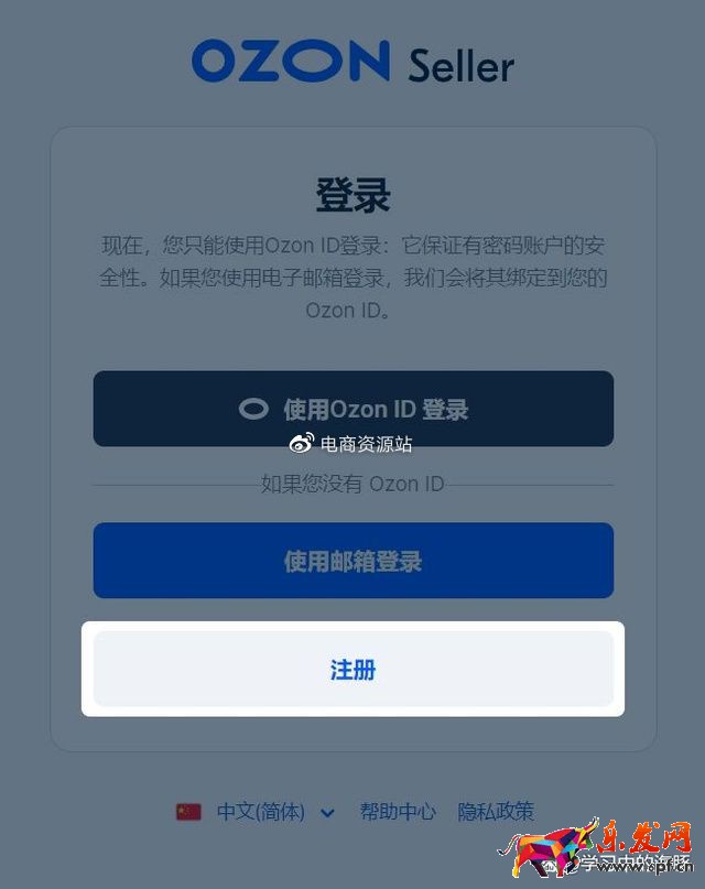 2.设置您的Ozon ID或登录(如果您已经有 Ozon ID):