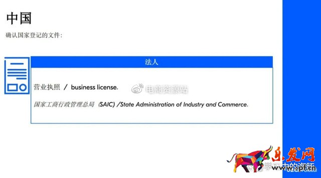 1、 中国大陆或香港公司营业执照(需要中英文版)