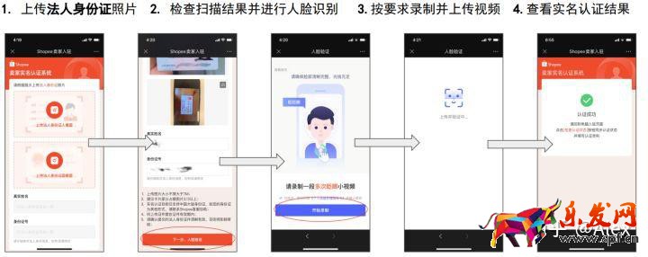四个部分的信息需要提交:法人实名认证,联系人信息,公司信息,店铺信息