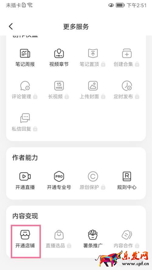 4 打开更多服务的界面点击开通店铺选项