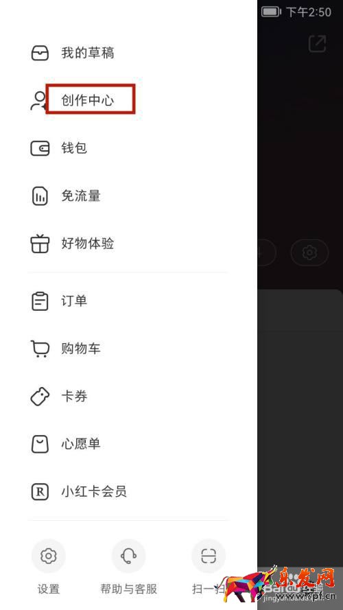 2 打开左倾栏点击创作中心选项