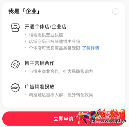 3 随后选择我是企业,点击下方的【立即申请】并提交申请材料即可。