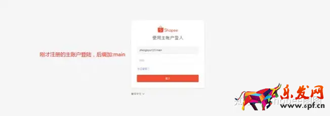 5、然后写入验证码,编辑完后立即登录,就是刚刚注册的主账户和密码,记得主账户的后缀:main;